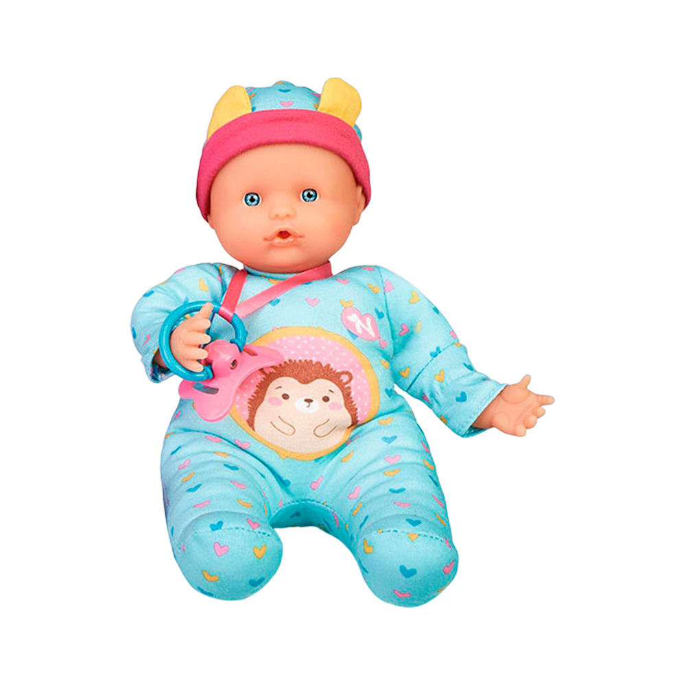 Si aprietan su manto dirá Mamá y Papá, al apretar su barriguita se reirá, si le das chupete hace sonidos de succión, pero si se lo quitas comenzará a llorar, además le puedes poner su dedo en la boca